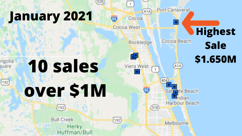 The condo market is starting 2021 pretty active too. Right now, we have 103 condos available for sale in Cocoa Beach and Cape Canaveral. Prices range from $94,900 for a 338 SqFt condo in the Surf-N-Sun condo in Cocoa Beach to the 10,000SqFt penthouse in the Villa Verde condominium in South Cocoa Beach listed for $2.997M.