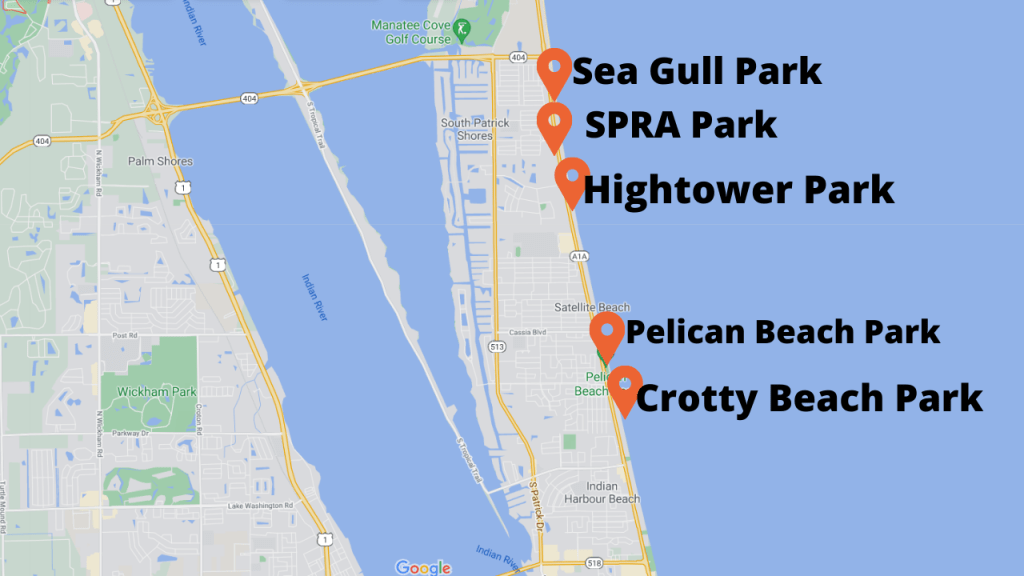 There are 2 additional parks in the unincorporated section of North Satellite Beach (aka South Patrick Shores) Sea Gull Park is a Brevard County Park that offers free parking, 2 covered picnic areas, and access to the beach. S.P.R.A (South Patrick Residents Association) park offers free parking and beach access.